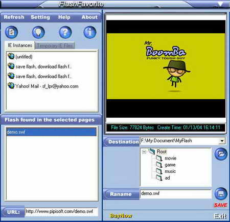 Flash Favorite v1.9.3 英文正式版(應用工具 幫你迅速地儲存正在播放的flash動畫)