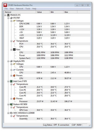 CPUID HWMonitor是一款類似於CPU-Z的小工具,即時監測CPU的電壓、溫度、風扇轉速