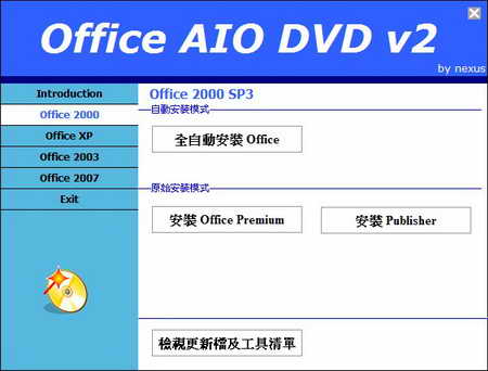 Office All-In-One DVD 光碟包含 Microsoft Office 2000 - 2007 所有版本。